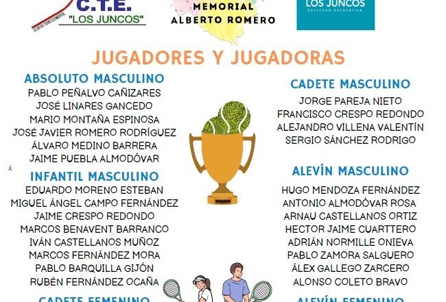 CAMPEONATO PROVINCIAL JUNIOR TOLEDO 22 y 23 de Febrero 2025 TENIS CIUDAD DE LA CERÁMICA