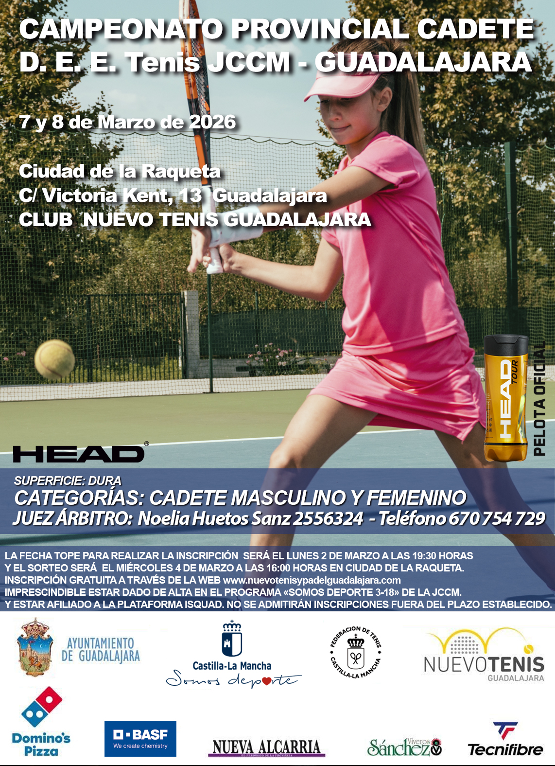 INSCRIPCIÓN GRATUITA A TRAVÉS DE LA WEB www.nuevotenisypadelguadalajara.com