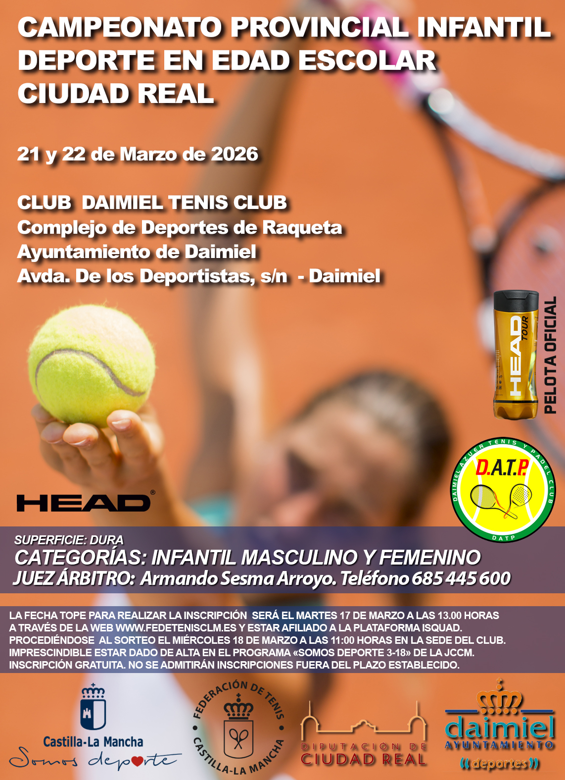 JUEZ ÁRBITRO: Armando Sesma Arroyo. Teléfono 685 445 600