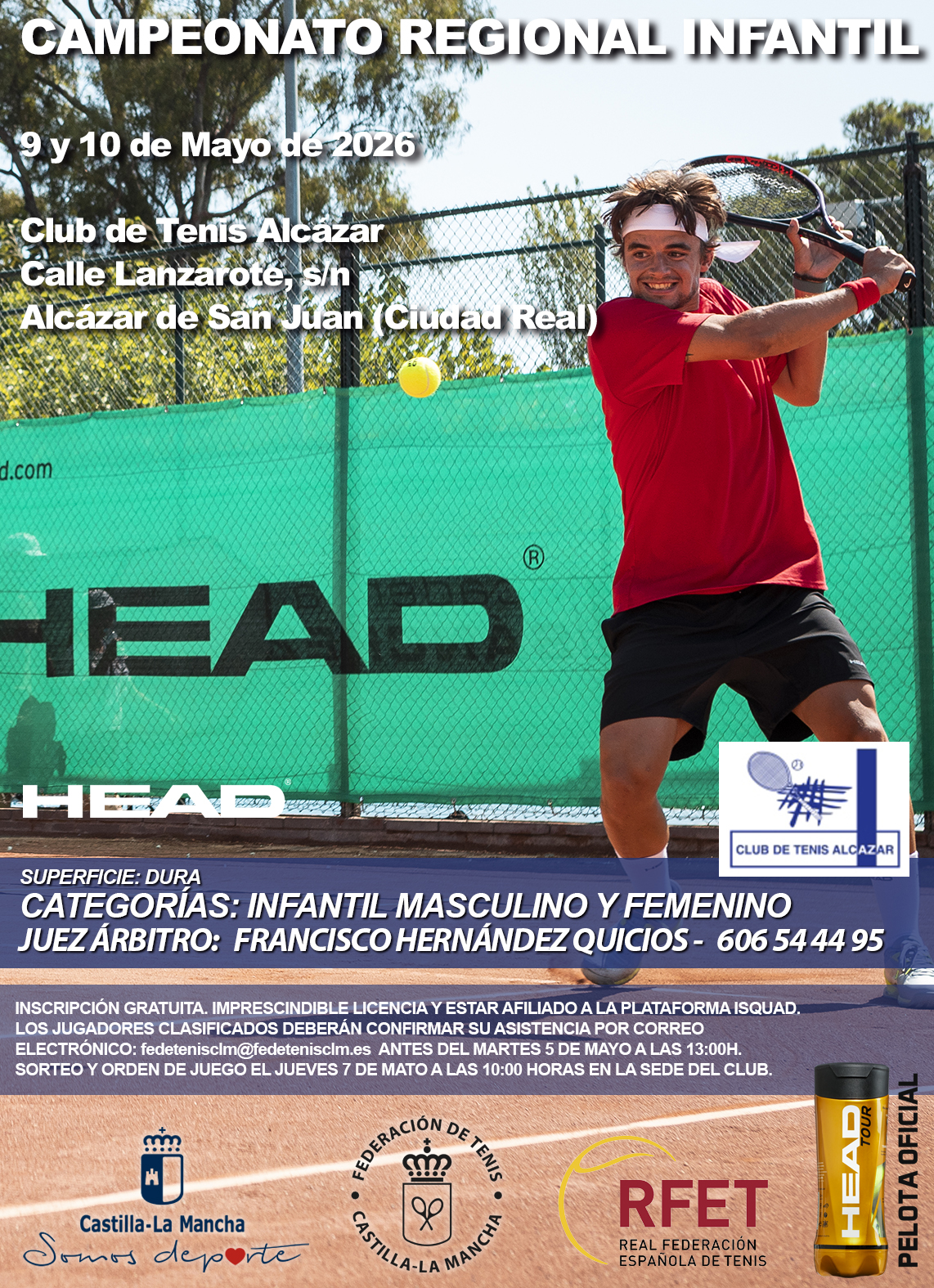 LOS JUGADORES CLASIFICADOS DEBERÁN CONFIRMAR SU ASISTENCIA POR CORREO ELECTRÓNICO: fedetenisclm@fedetenisclm.es ANTES DEL MARTES 5 DE MAYO A LAS 13:00H. SORTEO Y ORDEN DE JUEGO EL JUEVES 7 DE MATO A LAS 10:00 HORAS EN LA SEDE DEL CLUB.