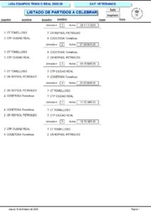 CALENDARIO DE ALEVIN Y VETERANOS. (Conforme a sorteo en plataforma ISQUAD).