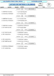 CALENDARIO DE ALEVIN Y VETERANOS. (Conforme a sorteo en plataforma ISQUAD).